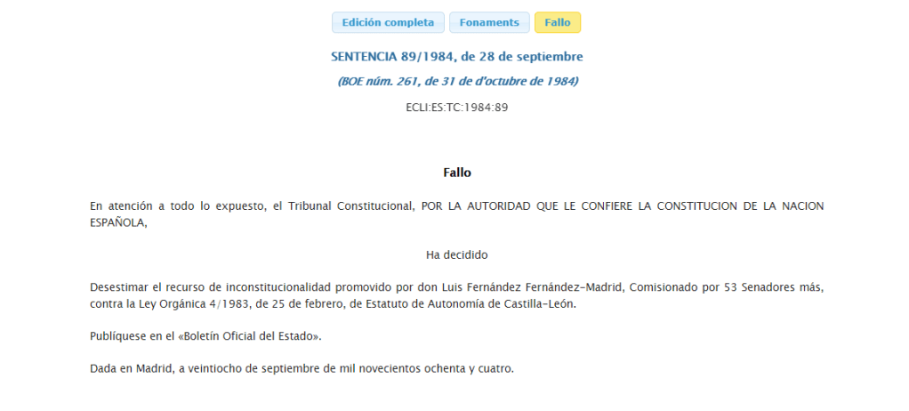 Se recurrió la Ley del Estatuto de Autonomía por inconstitucionalidad, enarbolando a su favor los artículos 2 y 143 de la constitución española que afirman que León puede tener derecho a ser una comunidad autónoma. En la sentencia 89/1984 el Tribunal Constitucional considera que no hay defectos en el proceso y que, por tanto, se haría efectivo.